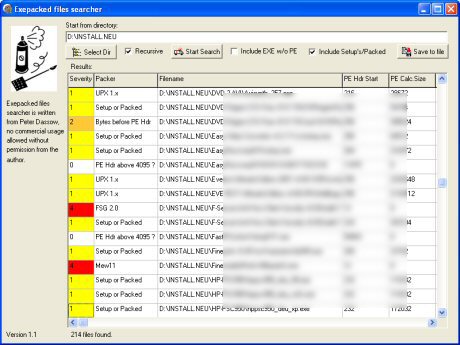 To get all these „candidates“ on your own harddisk, I developed an exepacker files searcher program.